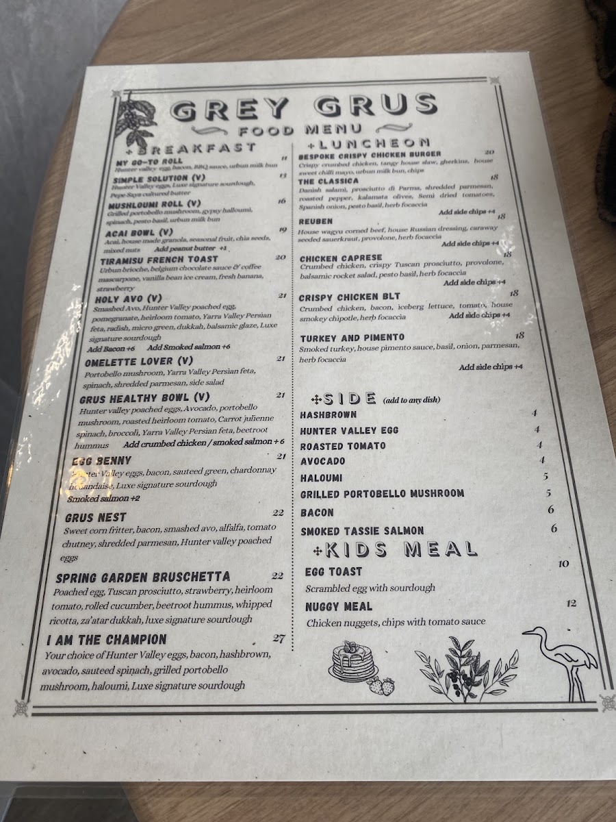 Grey Grus Cafe Menu